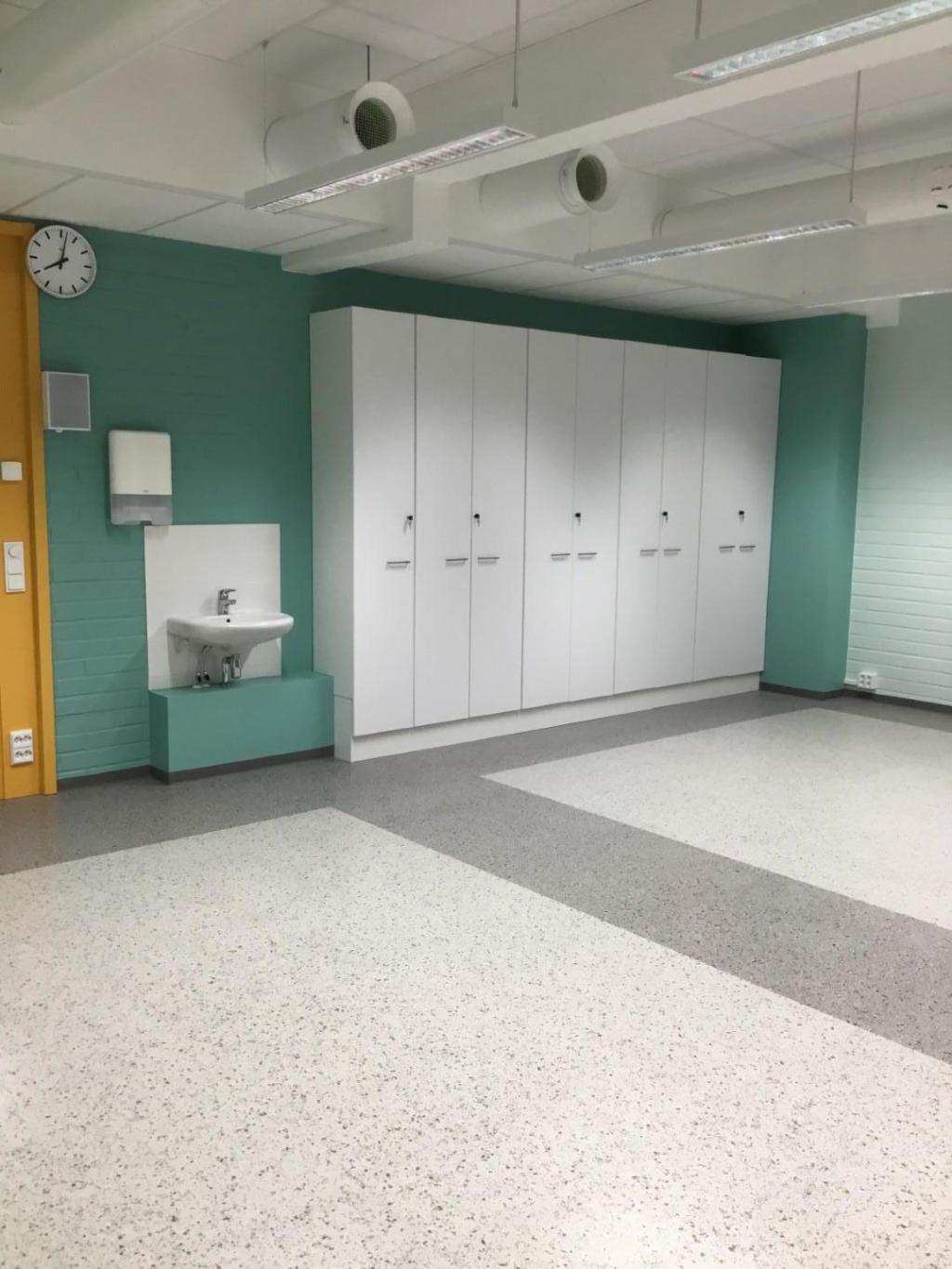 Koulurakennuksen LVISA-tekniikan uusiminen sekä sisätilojen saneeraustyöt. Kattomuodon muutos tasakatosta harjakatoksi ja IV-konehuoneen rakentaminen. Suurkeittiön ja AV-tekniikan muutokset. Laajuus: 8382 m2.