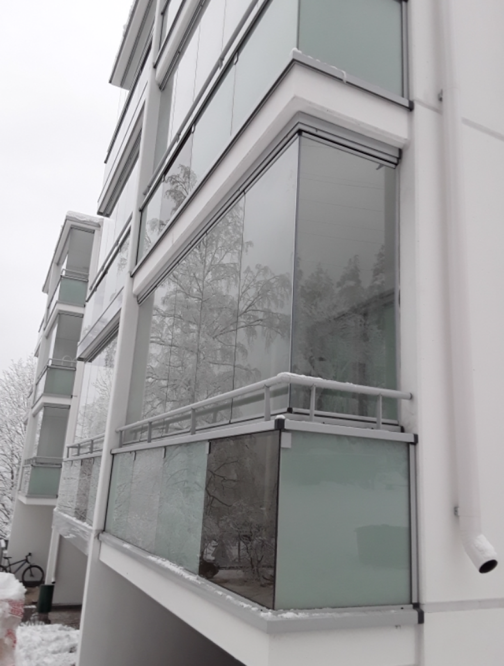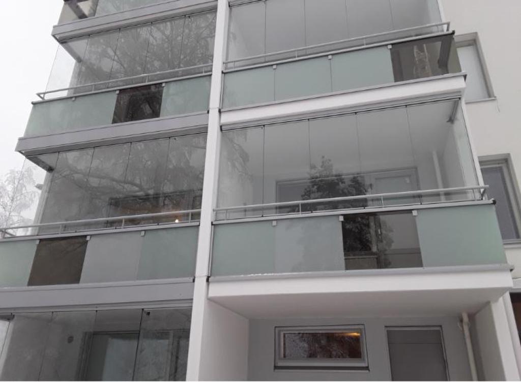 Kohteessa toteutettiin laaja saneeraus, joka käsitti kahden asuinkerrostalon julkisivut, parvekkeet ja vesikaton. Taloja 2, asuntoja 34 kpl.