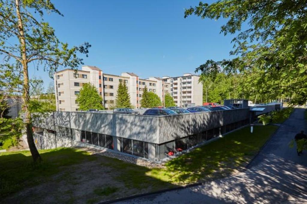 Kohteessa peruskorjattiin 460 autopaikkainen paikoitushalli, jonka pinta-ala 9000m2.